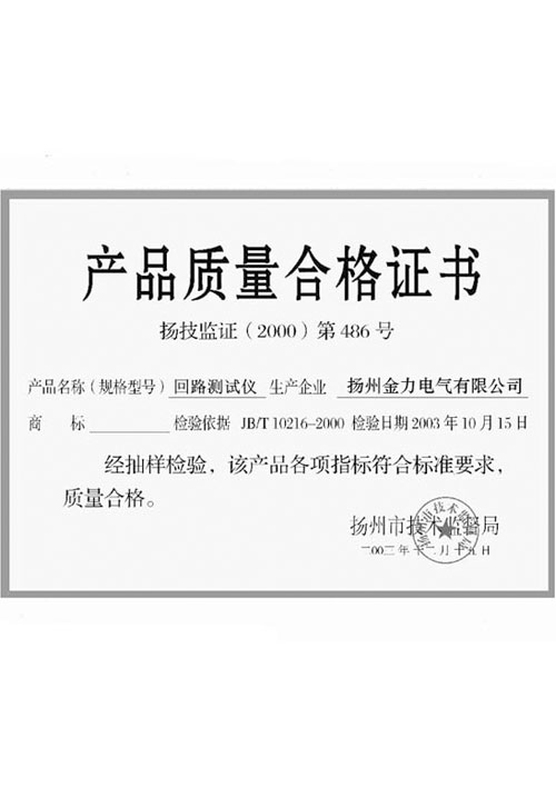 產(chǎn)品質(zhì)量合格證書(shū)