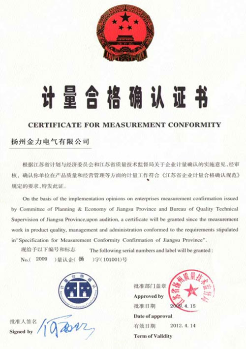 計(jì)量合格確認(rèn)證書(shū)