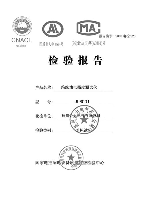 油耐壓測(cè)試儀檢驗(yàn)報(bào)告